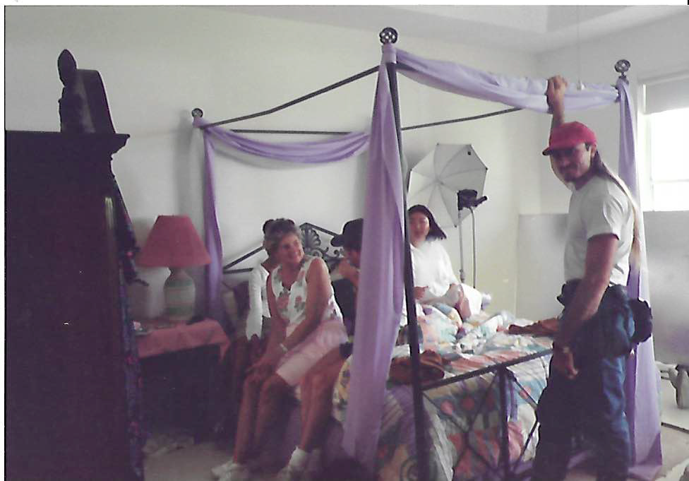 Here’s the story of how Burt Reynolds shot scenes from his movie “The Maddening” in their house. They had just moved into the newly built home in Jupiter when there was a knock on the door. Tony answered and was greeted by two men who said that they were from Burt Reynolds film productions and wanted to look around inside to see if it would be a good place to shoot their movie. Most of us, thinking it was a scam, would say NO and close the door. Not Tony! He let the strangers in and gave them a tour of the house. Well, it turns out that it wasn’t a scam and they rented out their house for a few weeks for the movie shoot. Here are some photos taken by Dot’s brother George (the family photographer). The photos with the black top and bottoms are actual screen shots taken from the movie. The ones without the frame are George’s photos taken before, during and after the shoot. We all waited with excitement for the picture to make it to the big screen but, alas, it wasn’t the greatest film ever made and went direct to video, never making it to the theaters. There may be a version available on Youtube for free but I think it’s dubbed in Portuguese, but at least you can see the scenes from their house.